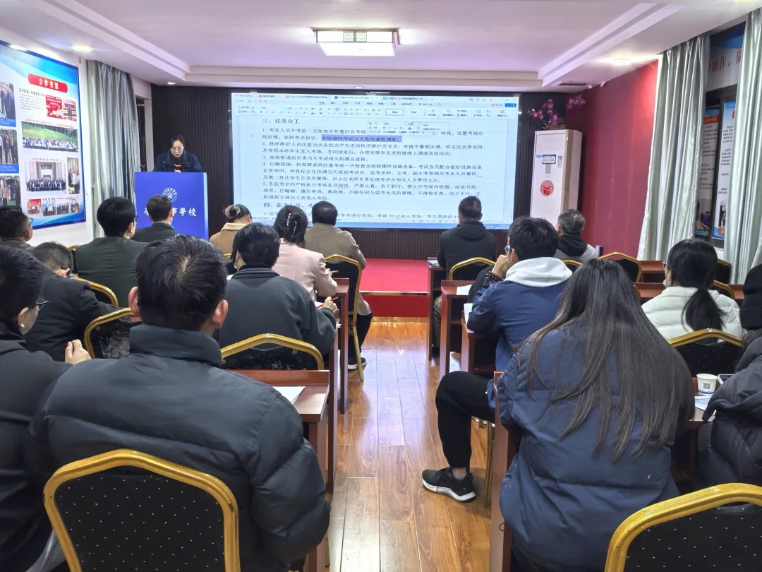 考试前期,学校专项召开办公软件考试考务工作会议,全体考务人员全员参会。会议明确考试核心目标与考评标准,细化工作分工、层层压实责任,对考场布置、设备调试、试卷管理、纪律要求等关键环节周密部署,明晰监考、巡考岗位职责。