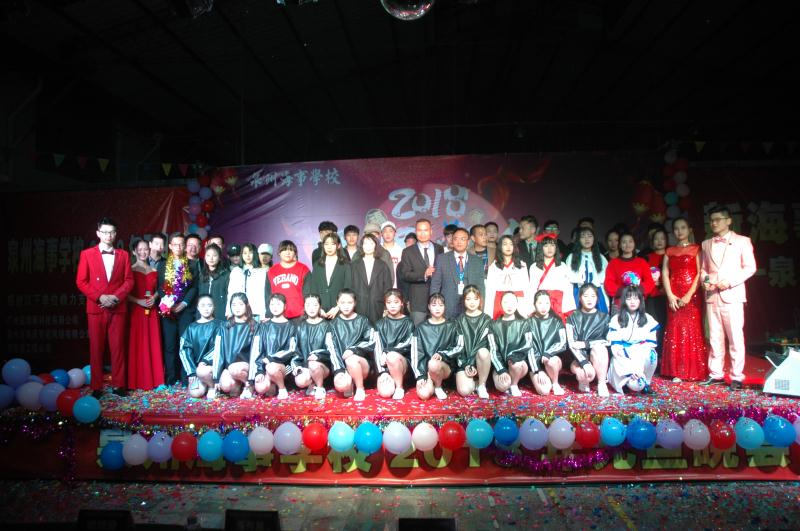 “郁郁海丝、刺桐暖冬辞旧岁; 悠悠古都,海事学子迎新年”。值此2018年元旦佳节来临之际,2017年12月28日晚,泉州海事学校在室内运动中心隆重举办元旦迎新文艺晚会,近千名师生们欢聚一堂,载歌载舞,共同庆祝新年的到来。我校林高校长、林建河副校长、陈惠阳校长助理、各处室负责人以及20几位有关单位嘉宾莅临晚会现场观看演出。